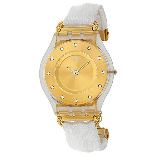 -. Title : Swatch White Silk Champagne Dial Ladies Watch SFK374G