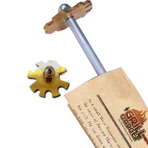 - TOUGH CONSTRUCTION AND LONG WOOD HANDLE: The shaft of the grill gadget is made of a flexible but very sturdy aircraft grade aluminum metal. There's a universal brass head that fits any grill grate rack and a wooden handle totaling 16".