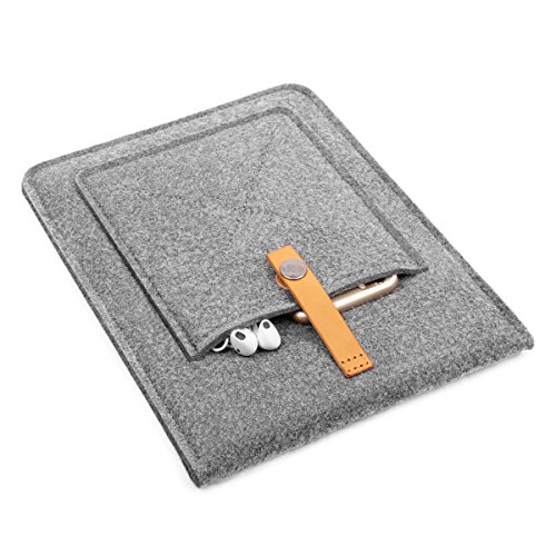 -. Feature : Item size(outside): 10.8 x 8 x 0.3 inches , Fit for iPad 2,3,4/ iPad Air 1/ iPad Air 2/Samsung Tab 4 T530 /Samsung Tab S T800/Tab S2 9.7"/Tab A 9.7"/Apple iPad Pro 9.7"/Apple iPad Air / Wool felt is made of 100% natural wool.Environmentally friendly material. / Perfect protection from dust, scratches and light impact damage. / 1 internal pockets and 1 outside in bag.Convenient to put mobile phone, notebook, cards, USB cable, headphone etc. / Great for organizing your potable electronics on the go.Slim and lightweight: Does not bulk your devices up and can easily be stored into your briefcase, backpack, or other bag