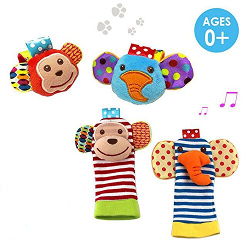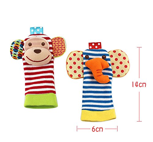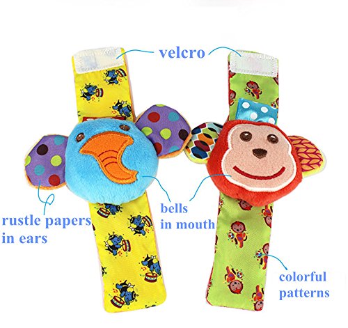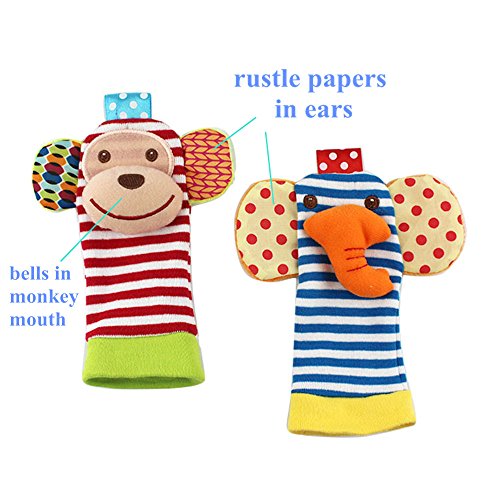 [Product Information]- ★ BRIGHT COLORFUL DESIGN - Please note that both of wrists and monkey sock have rattle, the elephant sock without rattle. The Elephant and Monkey wrist rattle set comes in a vibrant array of colors and patterns, making it extremely interesting to your baby. These bright colors and designs make this toy easy to find. Stimulating to your baby's senses,this toy makes a great baby shower gift for boys or girls.