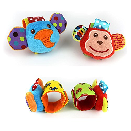 - ★ PROMOTE MOTOR SKILL - The many different textures and sounds of this visually appealing wrist rattle and foot finder set enables your baby to develop the essential touch, feel and hearing senses that are vital for spatial development. These toys capture your baby's interest and attention with sound as they move, thus enhancing your child's visual, audio and motor coordination. Reduce fussiness and and boredom by intellectually engaging your baby.