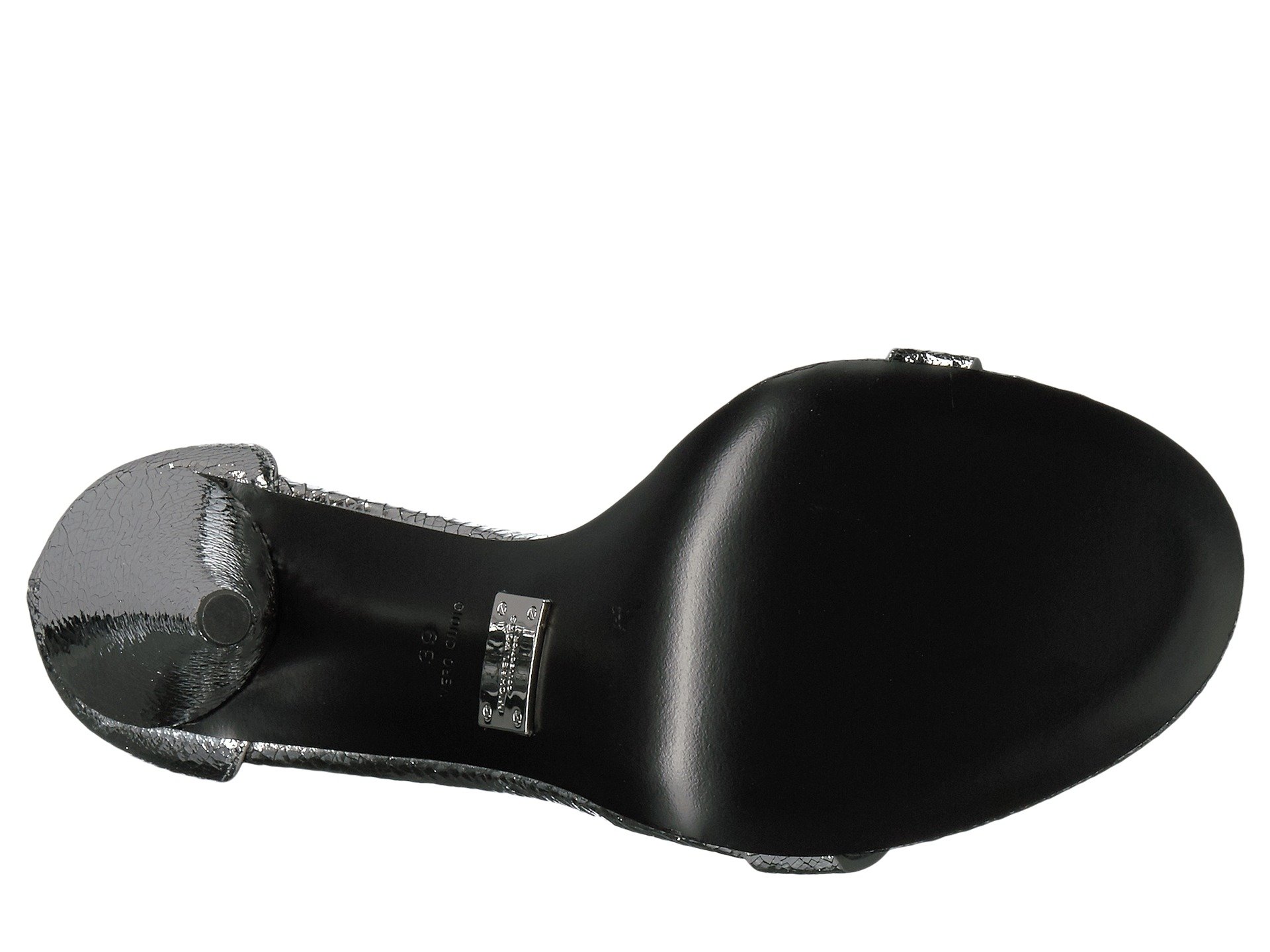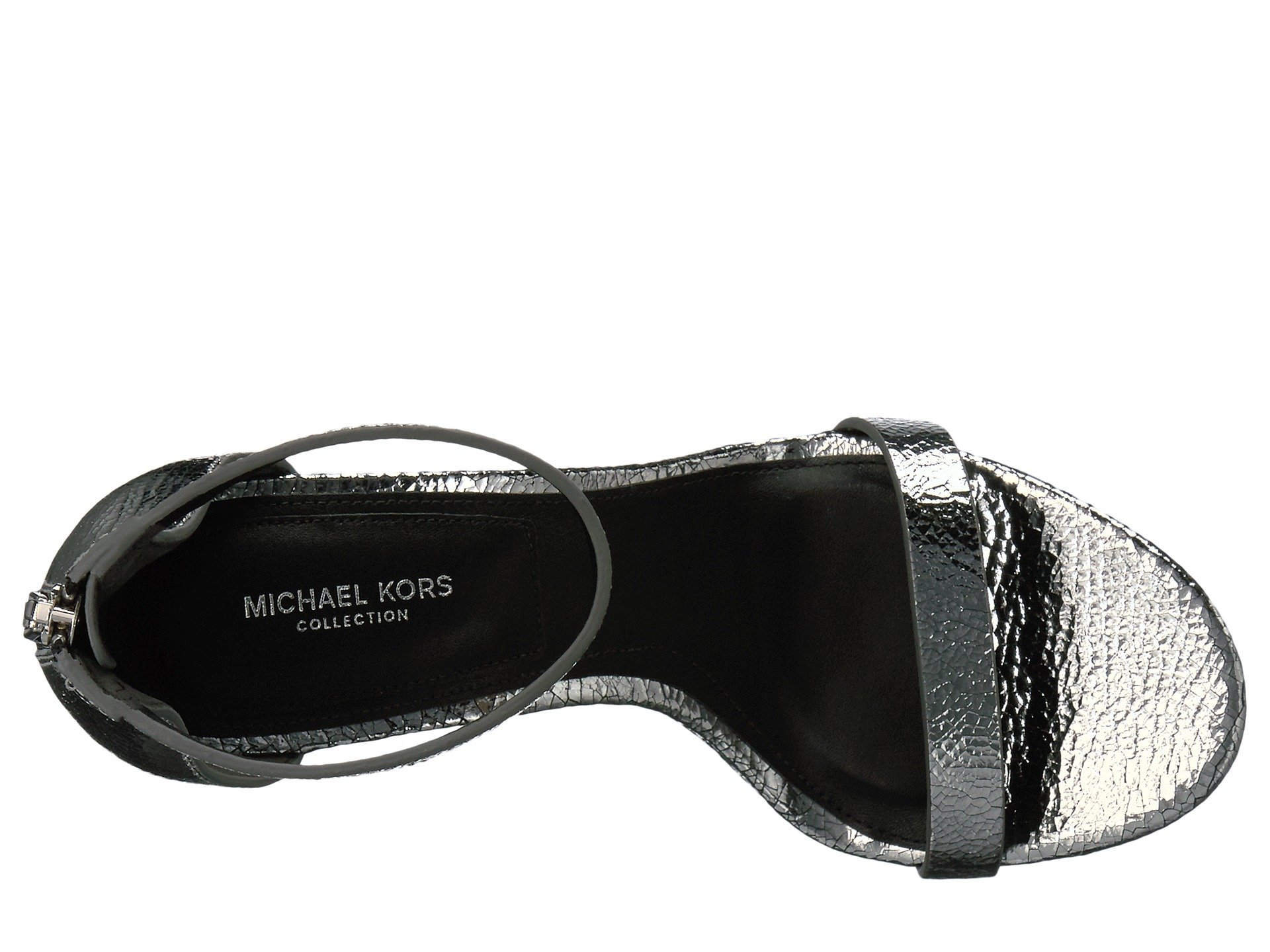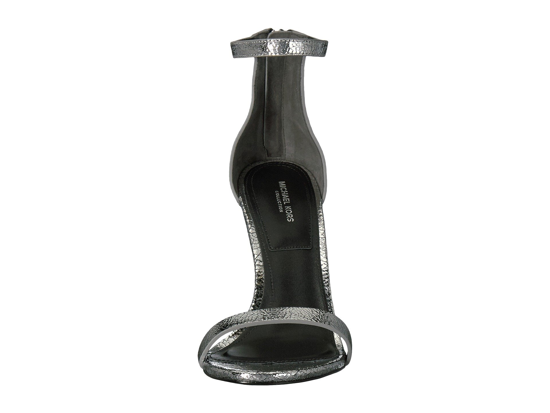 | Product Information SKU: #8914579All eyes will be on you when you dare to wear the leg-lengthening Michael Kors?Ramsey heeled sandal.Metallic leather upper with cracked effect.Back-zipper closure.Round-toe silhouette.Minimalist profile with open design.Leather and textile lining and insole.Wrapped, cone heel.Leather outsole.Imported.Product measurements were taken using size 39 (US Women's 9), width M. Please note that measurements may vary by size.Weight of footwear is based on a single item, not a pair.Measurements: Heel Height: 4 in Weight: 9 oz |