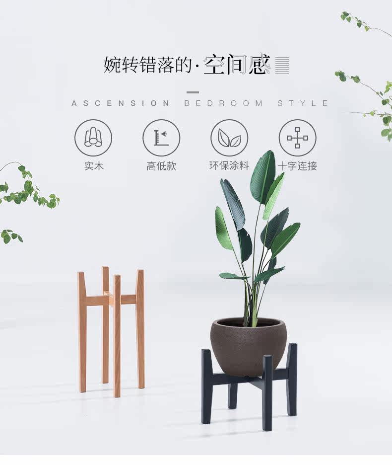 简域实木花架客厅花几阳台花盆架子绿萝展示架现代室内落地花架木