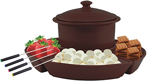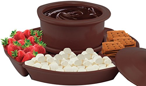 Studio : Ovente Publisher : Ovente Product Description Ovente's Electric Chocolate or Cheese Fondue Set is perfect for those who love to entertain dinner parties, outdoor barbeques, and a multitude of other events. As its attractive ceramic pot and serving tray with dipping forks embellishes your serving table-it's sure to be a hit among your guests! Everyone loves a delicious hot dip, whether it's chocolate or cheese, it's your choice! If you're feeling sweet, add marshmallows, strawberries, apples, pretzels, or graham crackers to the tray for dipping in rich chocolate. If you're feeling more savory, have steamed vegetables, tortilla chips, cubed meats, seafood, or baby potatoes out for dipping in melted cheese. USING YOUR FONDUE SET: 1. Place chocolate, cheese, or other ingredients of your choice into the ceramic pot. 2. Place pot onto warming base and cover with lid. 3. Plug the unit into a power outlet. 4. Fill the tray compartments with snacks you want to dip in the fondue. 5. Use a fondue fork, skewer, or long wooden stick to dip food into the fondue. NOTE: -Always place the ceramic pot on a heat-proof mat or surface. -Always use oven mitts or a thick towel when handling the fondue set when hot. -Do NOT touch the base unit after cooking-it will remain HOT! -NEVER immerse the base in water. -Make sure the unit is unplugged and cool before cleaning. It also comes with Ovente's 1-YEAR LIMITED WARRANTY, so snag yours today absolutely RISK-FREE! 0