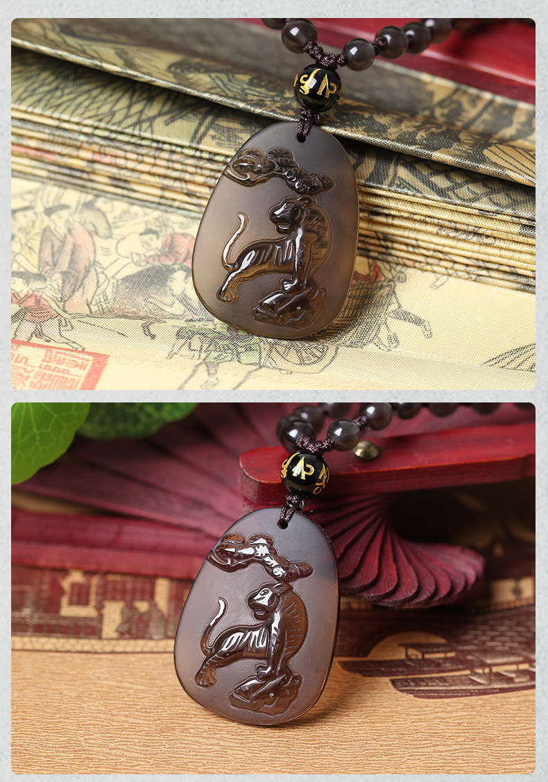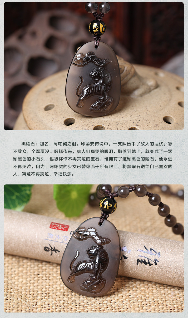 开光属牛人的吉祥物黑曜石吊坠护身符