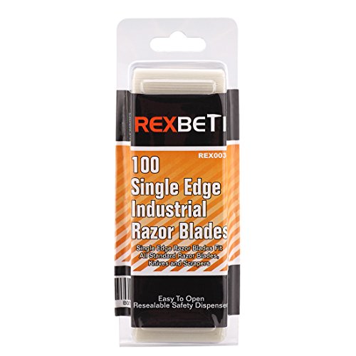 Replacement Single Edge Industrial Razor Blades By RexBeTi , Box of 100 (Plastic package)
