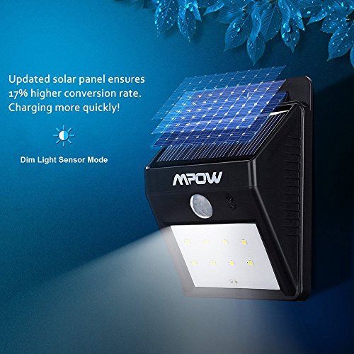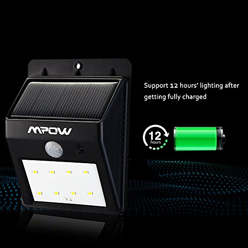 - Ultra Bright LED Solar Lights: 8 LED lights occupy Small space ,but offer excellent illumination .the sensor ball head of Mpow Solar Light with a large sensor have a longer sensor length of 10-26 feet with a 120 degree sensing angle.(Note: The sensor length will be affected by the cold temperature )