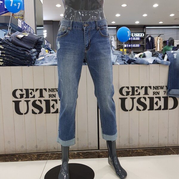 여름. 중청컬러의 크롭기장의 어반 스트레이트. 골반과 허벅지가 여유있는 일자핏. 반치수 작게주문가능 [마네킨 32사이즈 착장]