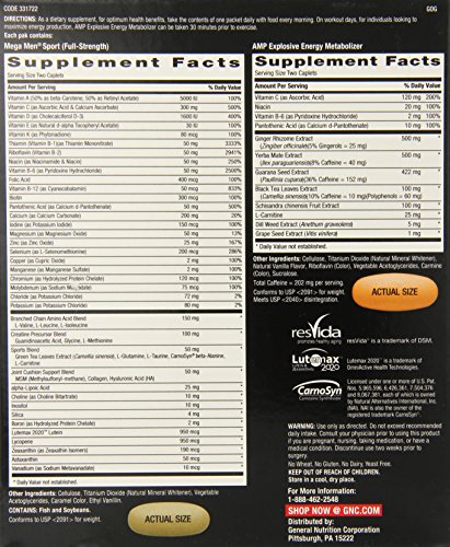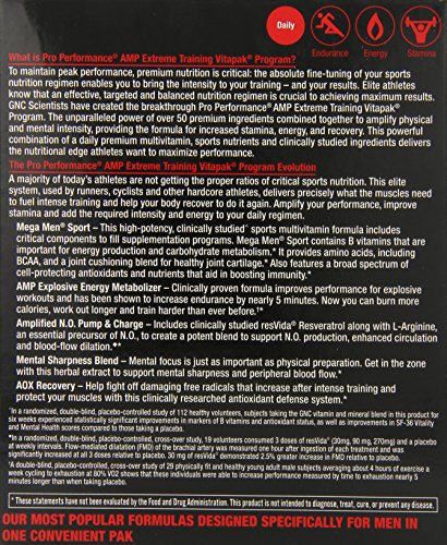 GNC Pro Performance AMP Mega Men Powered Extreme Training Vitapak Program Capsules, 30 Count