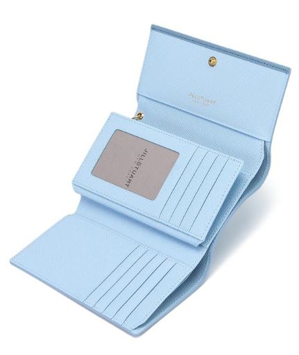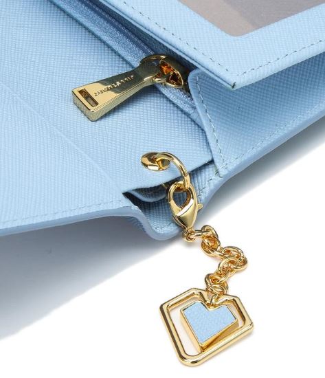 깔끔하고 여성스러운 컬러감에 금장 하트 로고 장식으로 포인트를 준 중지갑입니다.