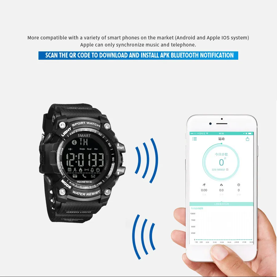 Feature:Water Resistant,Call Reminder,Bluetooth,Back Light,Shock Resistant,Alarm,Chronograph