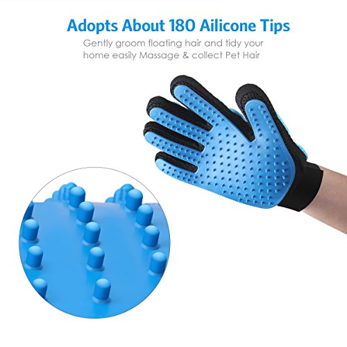 Five-Finger Design for Both Hands: Our product is five-finger designed for both left and right hand. They help you to reach around most areas of your pets. You can use this gentle and efficient glove to clean up and loose their hair.