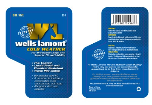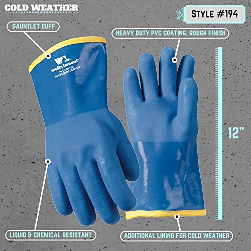 Heavy Duty PVC Winter Work Gloves with Gauntlet Cuff, Liquid/Chemical Resistant, (Wells Lamont 194)
