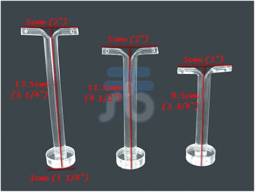 -. Feature : Feature: Earring Stand / Quantity: 3 sets (1 set of 3 pcs) (total: 9 pcs) / Material: Acrylic / Color: Clear / Height: 3 different size from 13.5CM (5 1/5") , 11.5CM (4 1/2") and 9.5CM (3 3/4") height