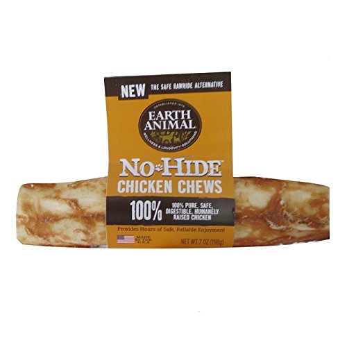 -. Feature : Earth Animal No Hide Chicken Chews Dog Treats, 7" (Case of 24) / A SAFER, HEALTHIER, BETTER ALTERNATIVE TO RAWHIDE: No-Hide Chews gives new meaning to dog treats. When it comes to our true core values, we insist on quality and we never settle for second best. We were tired of unacceptable ingredients and chemicals. This is why we offer No-Hide as they are one of the first chews of its kind and Hide free / LONG-LASTING, 100% DIGESTIBLE CHEW: No-Hide Chews were created for your dog's enjoyment and your own peace of mind. The chicken has been carefully rolled, cooked, and uniquely dried for a one of a kind chew your dog will love / NO CHEMICALS OR ADDITIVES: These 100% pure, natural chicken chews are digestible, nutritious and have absolutely NO chemicals or additives. Every No-Hide Chicken Chew is made in our USDA inspected human food facility. We know your dog will love our tasty, 100% digestible No-Hide Chicken Chews! / MADE IN USA: No-Hide Chicken Chews are always made from American farm-raised chicken with no added hormones, steroids or chemicals. No-Hide Chicken Chews give new meaning to dog chews. Try the safer, healthier alternative today! 24 - 7" Chews
