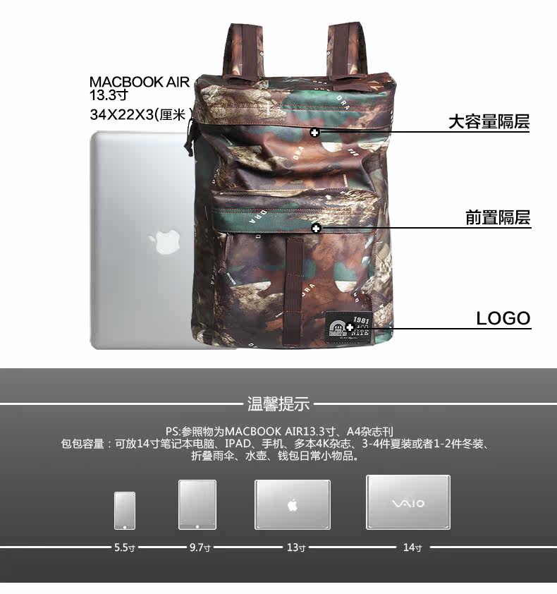 欧美时尚树叶印花双肩包男防水休闲背包女学生书包11058