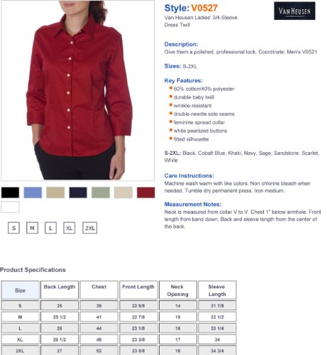 60% cotton/40% polyester 3.4 oz. durable baby twill wrinkle-resistant fitted silhouette Brand : Van Heusen Item model num : V0527 MPN(PartNumber) : V0527 EAN : 0712848251932