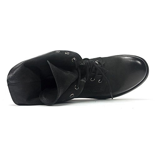 Product Description Rich leather uppers in a combat boot profile. Lace-up closure. Features fold down collar and distressed effects. Leather and textile lining. Cushion Plusa"¢ OrthoLiteA® footbed for all-day comfort. Light and durable TR outsole. Imported. 0