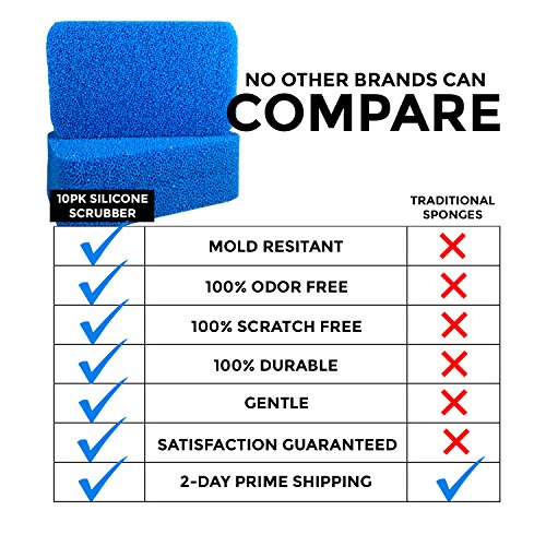 100% STRONG SCRUBBING - Silicone is both a stronger scrubber as it is more durable but also much gentler since it is less abrasive than traditional fiber sponges. Get a more thorough clean in half the time!