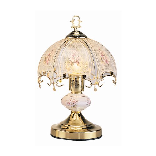 OK Lighting OK-609WG 14.25-Inch Touch Lamp with White Glass Floral Theme, Gold