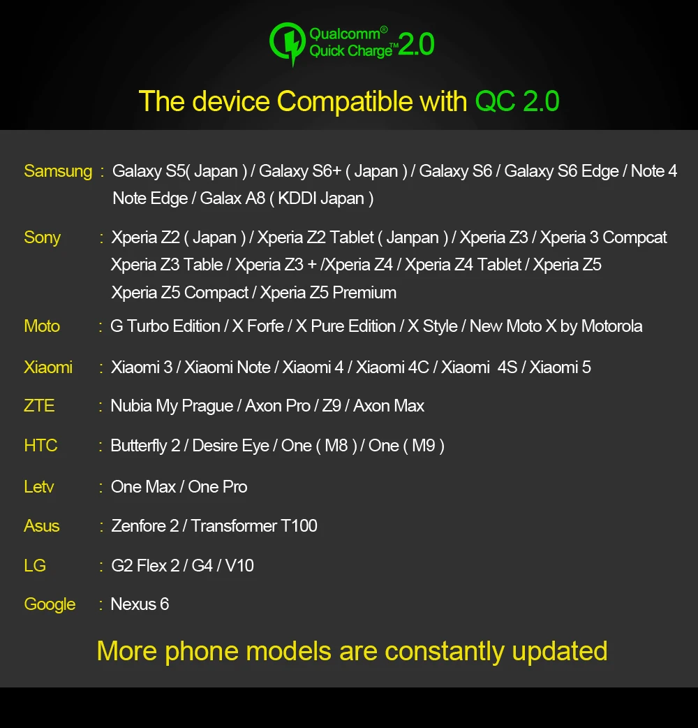Support Quick Charge Technology:Qualcomm Quick Charge 2.0