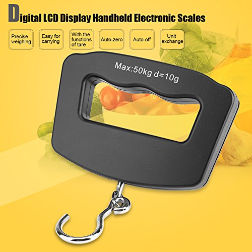Specification: Condition: 100% Brand New Color: Black Material: Mental ABS Battery: 2 x AAA battery (Not include the battery) Operating current: 3.7mA Off current: 1uA ???? Unit: kg, lb, oz,g ( 1kg=2.2Lb=2JIN=35oz ) Range: 150kg /?50g The length of the hook: 7.5 cm / 2.95"(appr.) Crane Scale Size (not include the hook ): (L) x (W) x (H) 12 x 8 x 1.5cm / 3.43" x 1.85" x 0.87"(appr.) LCD Size: (L) x (W) 4 x 1.5cm / 1.57" x 0.59" (appr.) ? Package Included: 1 x Crane Scale (Not include the battery) 1 x Manual ? Notice: Please allow 1-3cm error due to manual measurement and make sure you do not mind before ordering. Please understand that colors may exist chromatic aberration as the different placement of pictures.