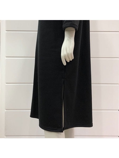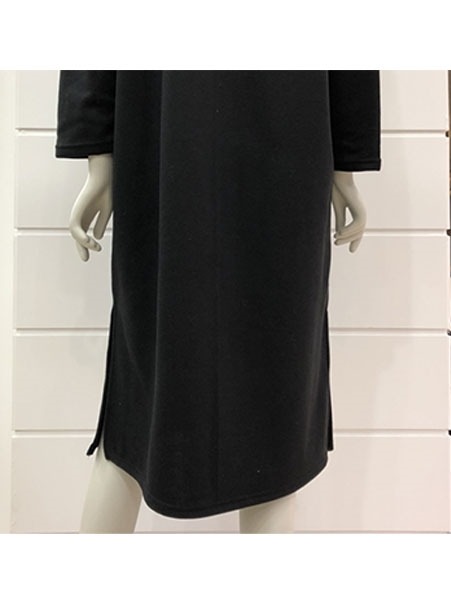 안감이 기모로 되어 있어 따뜻하게 입을 수 있는 원피스 입니다.밑단 양쪽에 트임이 있어 활동적이며, 루즈한 핏으로 편하게 착용할 수 있는 상품입니다.(모니터 해상도, 밝기, 조명, 컴퓨터 사양 및 각도에 따라 실물과 약간 차이가 있을 수 있습니다.)