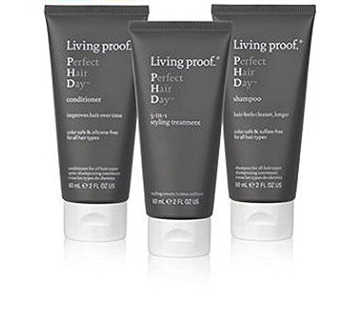 Studio : Living Proof Publisher : Living Proof Binding : Misc. Product Description Living Proof Perfect Hair Day Travel Kit from Living Proof Kit includes: Perfect hair Day (PhD) Shampoo (2 oz) Perfect hair Day (PhD) Conditioner (2 oz): Perfect hair Day (PhD) 5-in-1 Styling Treatment (2 oz) 0