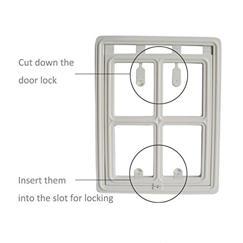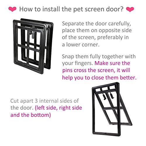 Studio : ShineBlue Publisher : ShineBlue Binding : Misc. Product Description How to install? 1. Remove screen and lay it down a flat hard surface: separate the frames of the pet door; place them on opposite side of the screen, preferably in a lower corner. 2. Align the pins and holes of the two frames, snap them fully together using your fingers and by tapping them with a hammer. Make sure the pins cross the screen before snap them, that will help you to close them better and easily. 3. Using a knife separate 3 sides of the door (left side, right side, bottom) from the frame; be sure to separate corners completely; snap the two latches into slots. . Product Specification: Material: Material: ABS Color: Black/White