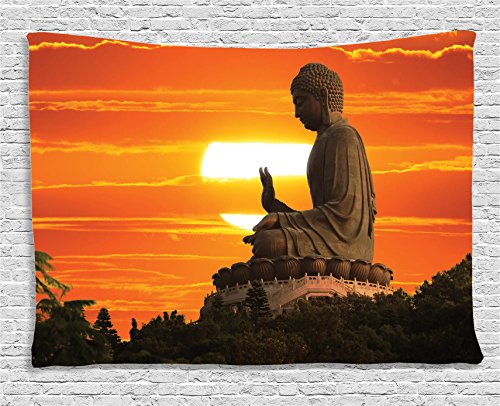 Ambesonne Buddhism Decorations Collection, Buddha Statue Over Scenic Sunset Picture, Bedroom Living Room Dorm Wall Hanging Tapestry, 80W X 60L Inch