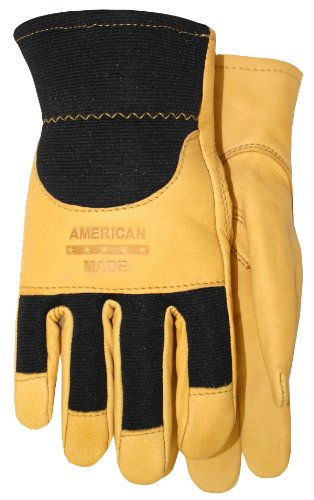 American Made Goatskin Leather Spandex Work Gloves with Knuckle Strap and Leather Palm, 175, Size: Large