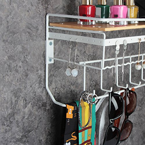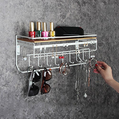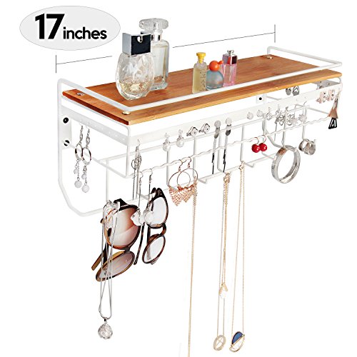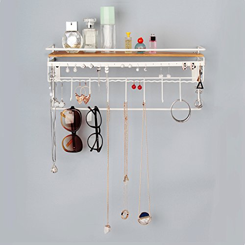 JackCubeDesign Hanging Jewelry Organizer Necklace Hanger Bracelet Holder Wall Mount Necklace Organizer with 9 Hooks and Bamboo Support(White,16.9 x 5.9 x 7.1 inches) - MK237B