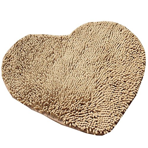 Alytimes Lovely Heart Love Shaped Pad Chenille Bedroom Area Rugs Shaggy Door Mat Doormat Carpet for Bathroom Living Room Kitchen Home Floor Decoration (50 x 60 cm, ochre)