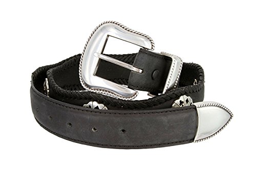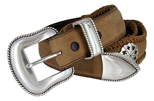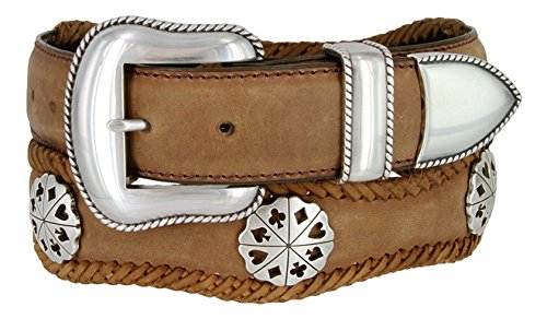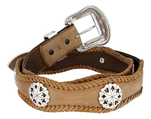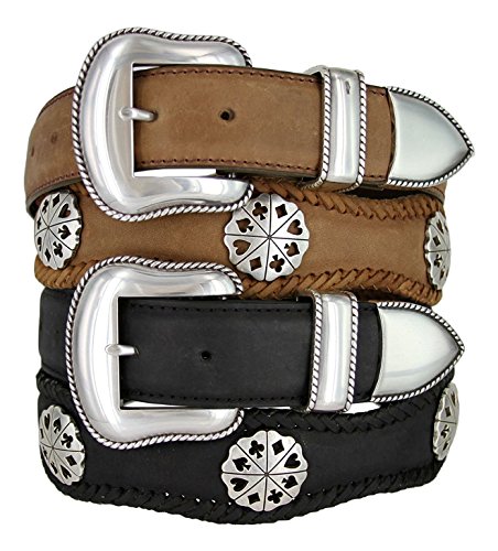 (Hagora)/Accessories/Belts Buckles/DIRECT FROM USA/Hagora Men Oil-Tanned Leather Laced Silver Card Conchos 3 Piece Buckle Belt
