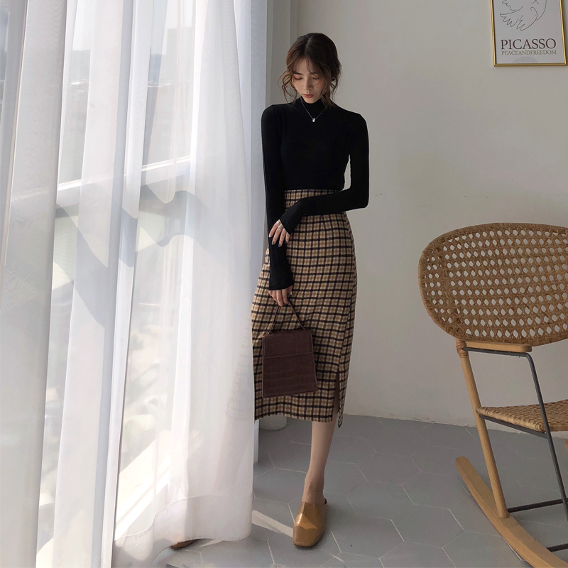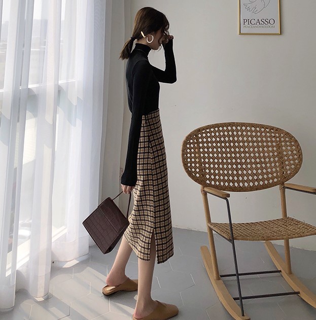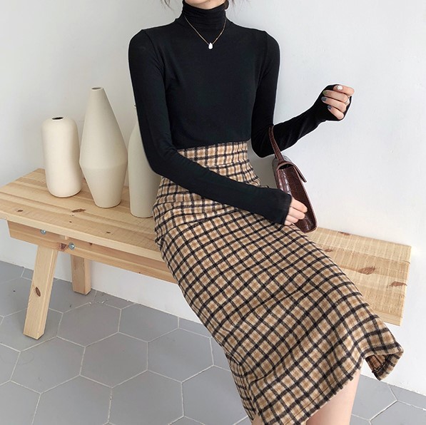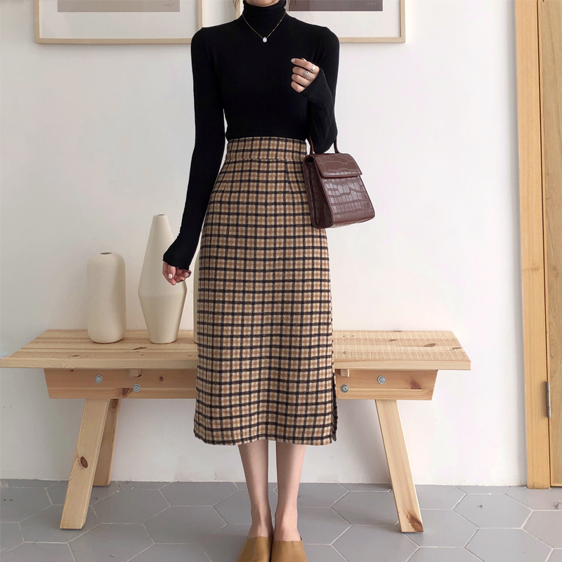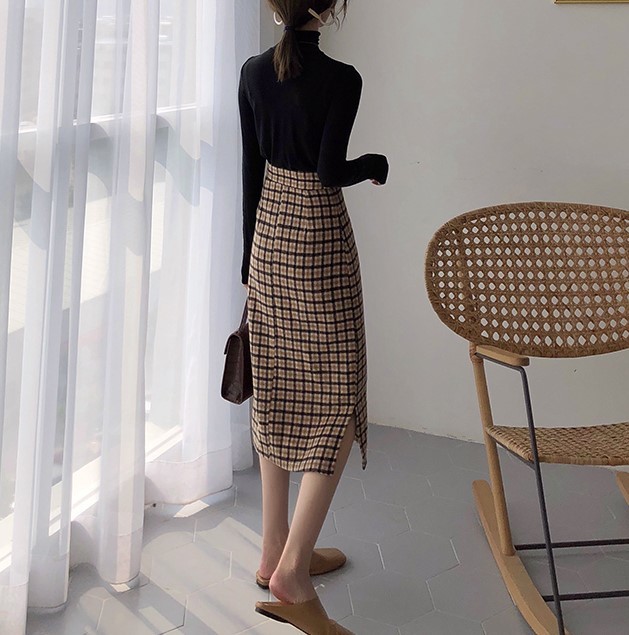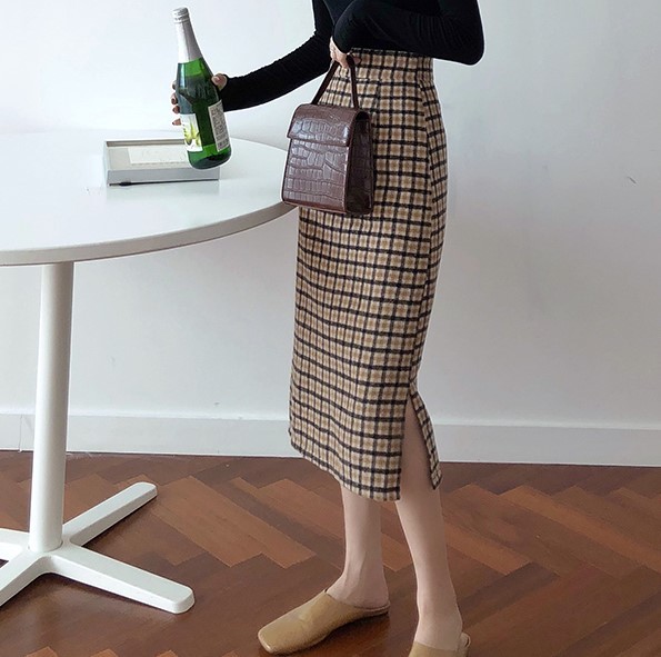 レディライクなミモレ丈のチェック柄タイトスカート。