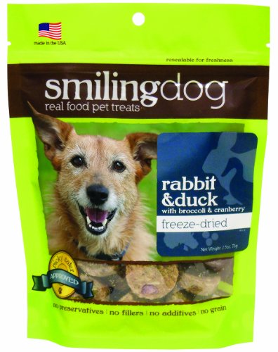 -. Title : Herbsmith Smiling Dog Freeze Dried Rabbit and Duck with Broccoli and Cranberry Treats for Dogs/Cats, 2.5 oz