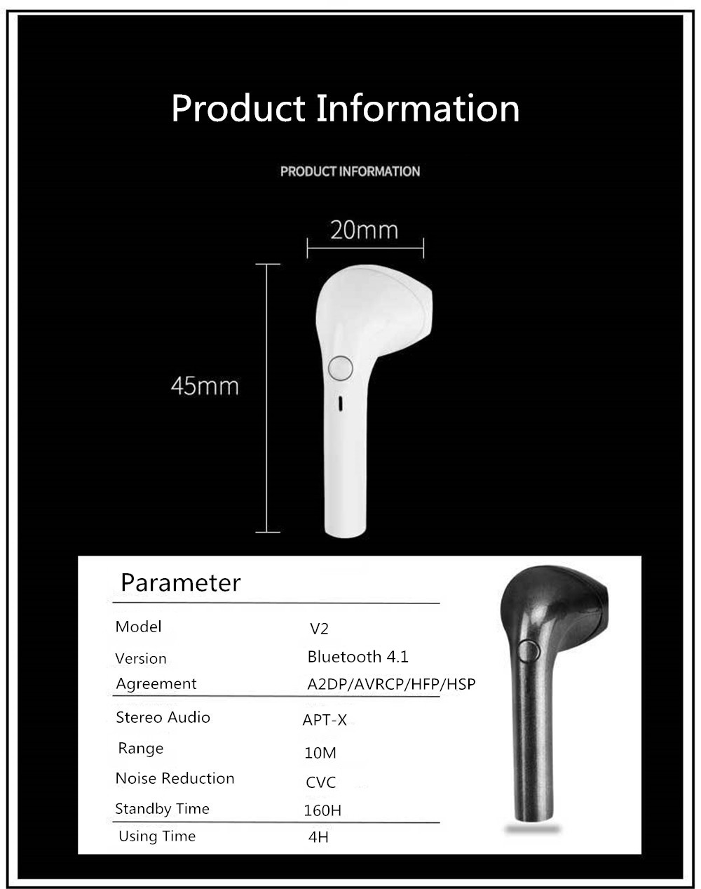 通用型:超轻型设计仅重5g。随身携带这款小巧的蓝牙耳机,当机会出现时,将其放入耳中,然后欣赏自己喜欢的音乐。