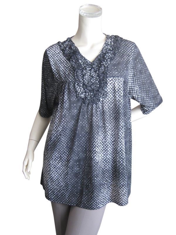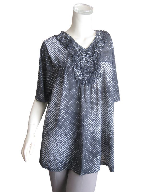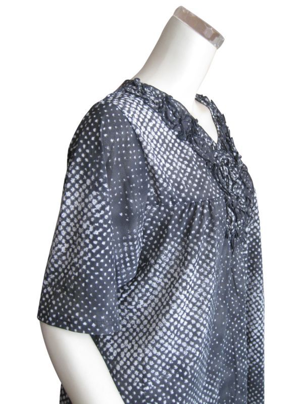 超ゆったり 変形ドット柄フリル使いチュニック
