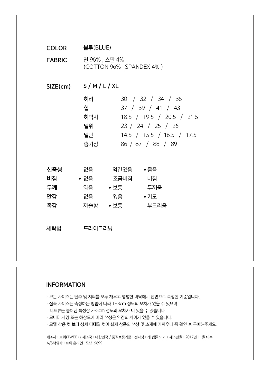 텐션좋은 데님원단과 허리부분 안쪽밴딩으로