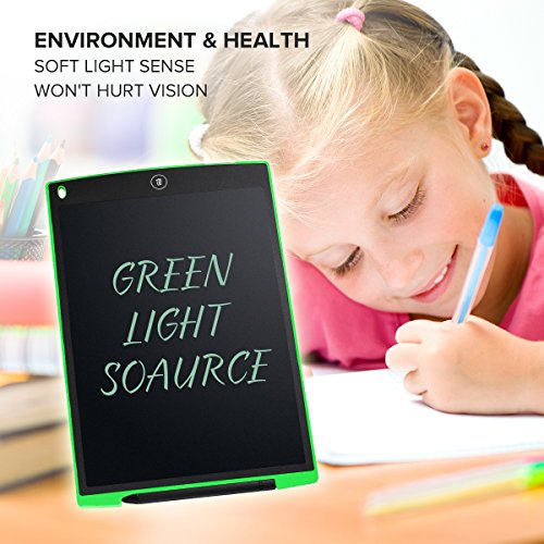 -. Feature : MULTIFUNCTION LCD WRITING TABLET: Durable, Untra slim & light, Perfect for Memos, Practicing Handwriting, Shopping lists, To-do, Arithmetic, Drawing and Pictures. A good replacement of stickers and paper, no need a pen or pencil, save over 100000 pcs paper! / PORTABLE & EYE-FRIENDLY: 12" writing area, 1/8" thin, Easy to take with you in a purse, scheduler, briefcase or backpack; No glowing light, no radiation, no glare, all is to protect users' eyesight / HIGH - TECH: The tablet's pressure-sensitive LCD writing surface creates lines of different thickness based on how hard you push. Erase your image with the touch of a button - and a friendly flash from the liquid crystal display / ONE BUTTON ERASE - Writing or drawing freely and then press the button on the top to erase, No need to wipe or any extra tools. Best choice for designers, engineers, teachers, students, kids... / MOUSE PAD FUNCTION * LONG WORKING LIFE- The back of the writing tablet also come with a small ruler design and can be used as a mouse pad; Working: Provides over 100000 erase cycles; Standy by: battery's life up to 3 years
