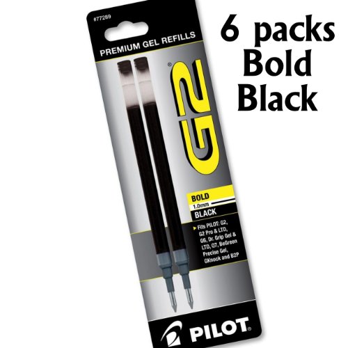 -. Title : Value Pack of 6, Pilot G2 Roller Ball ink refills, Bold, Black, 6 packs = 12 refills, (77289)