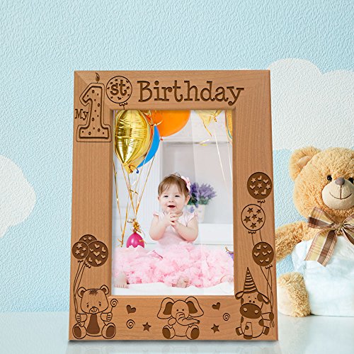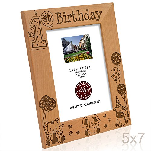 Kate Posh - My First (1st) Birthday Picture Frame - Engraved Natural Wood Photo Frame - First Birthday Gifts, First Birthday Boy, First Birthday Girl, First Birthday Decorations (5x7-Vertical)