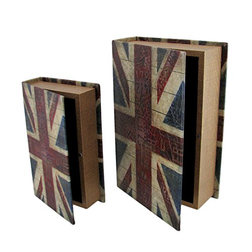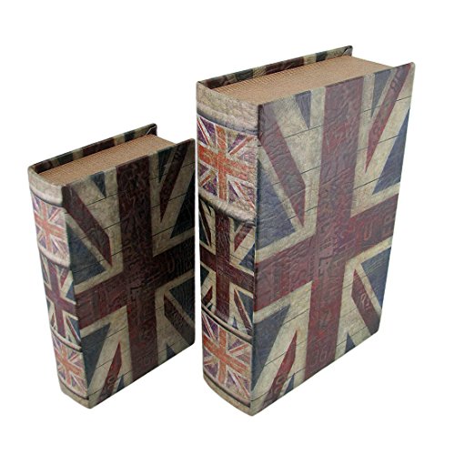Wood Decorative Boxes Set Of 2 British Flag Print Faux Leather Book Secret Stash Boxes 11 X 7 X 3 Inches Multicolored