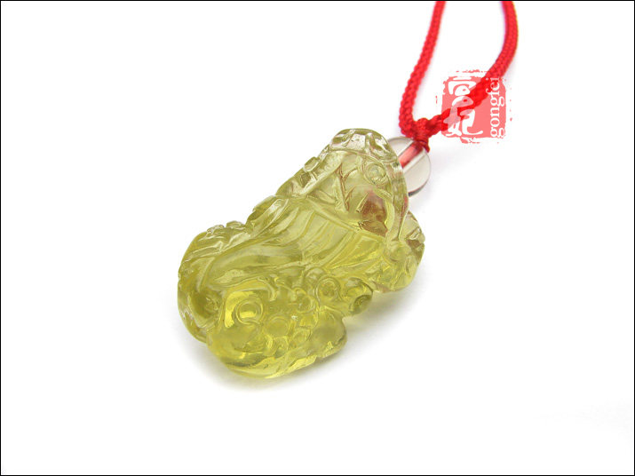 开光 天然黄水晶吊坠 黄水晶貔貅吊坠 吉祥如意