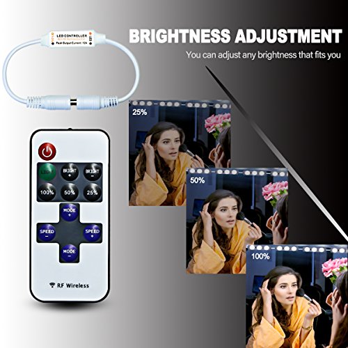 - ▷Dimmable Function: The vanity lights have a remote control, it is 10%-100% full dimmable. Each LED module light includes 3pcs highest brightness. You can turn on / turn off this make-up mirror light by the dimmer.
