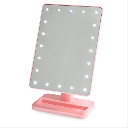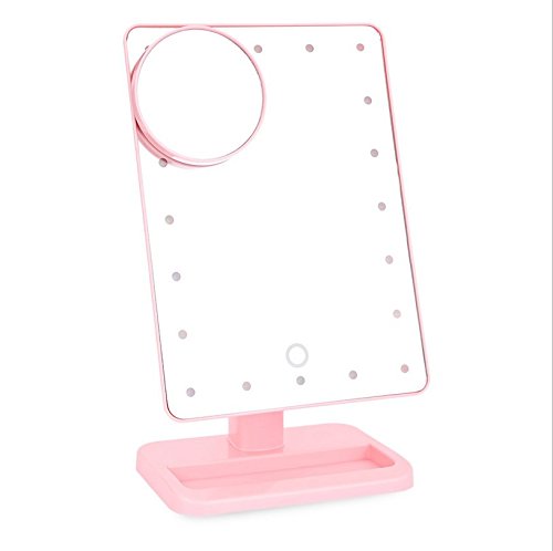 Touch Screen Makeup Mirror with 20 LED Lights, Desktop Vanity Cosmetic Mirror 180 Degree Rotation Movable (Pink)