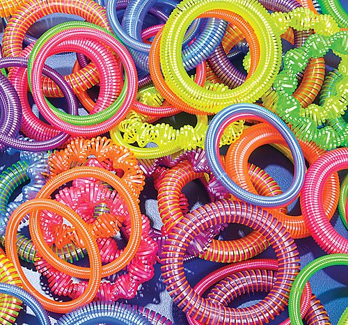 This collection of novelty bracelets features a variety of coiled designs and colors. Assortments may vary.