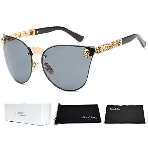 SamuRita Rimless Gothic Skull Cat Eye Sunglasses Punk Oversized Eyewear