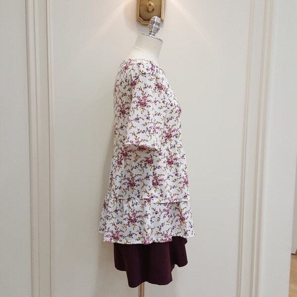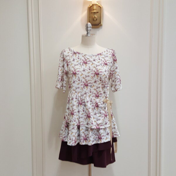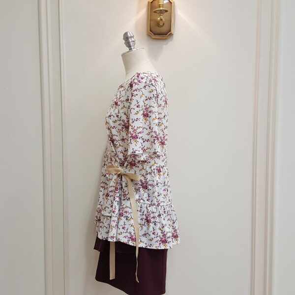 러블리한 분위기의 탑. 착용시 골테입으로 리본을 묶어주면 날씬한 실루엣 연출가능