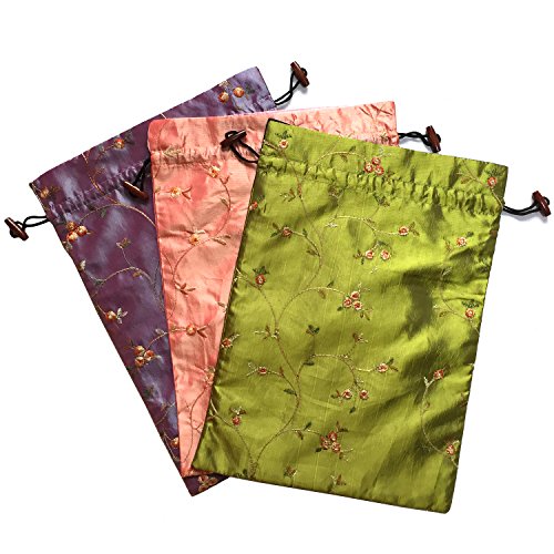 -. Title : Elesa Miracle Embroidered Silk Jacquard Travel Bag, Lingerie & Shoes Bag, 3 Packs